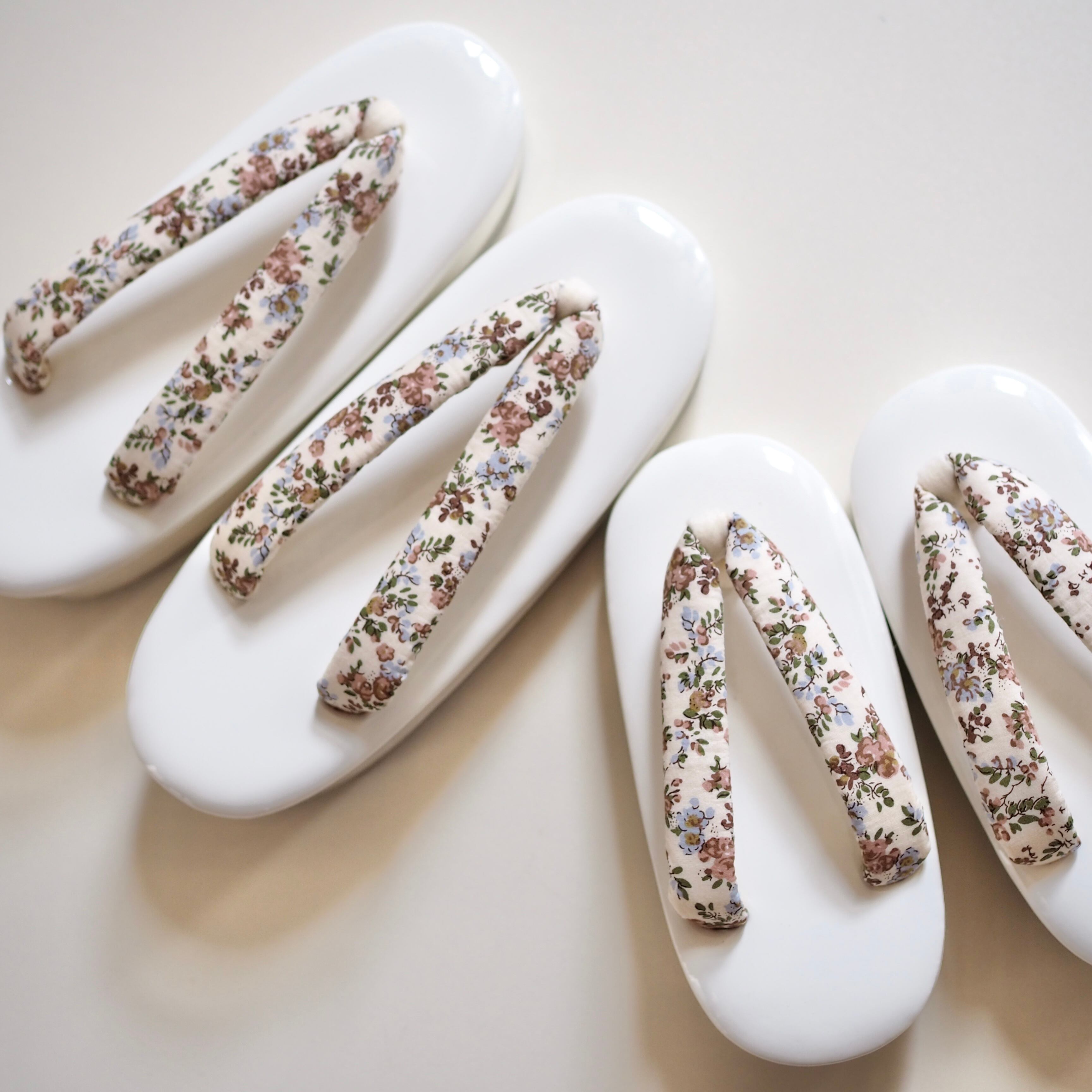 真っ白の合皮台に大人気のリバティファブリックを使用した鼻緒